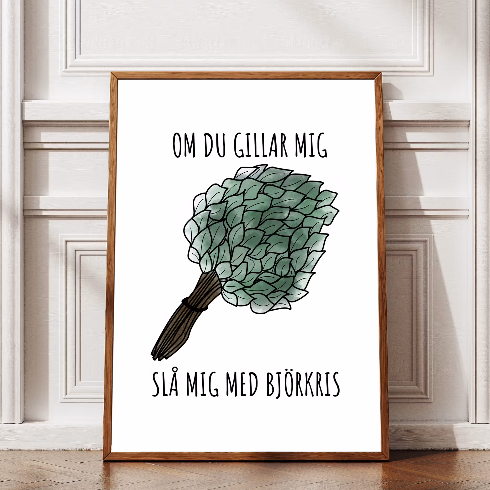 Limiterad - Slå Mig Med Björkris av Sanna Laakso. Finns enbart i ett exemplar i storleken 50 x 70 cm. Du + Björkris = Sant!