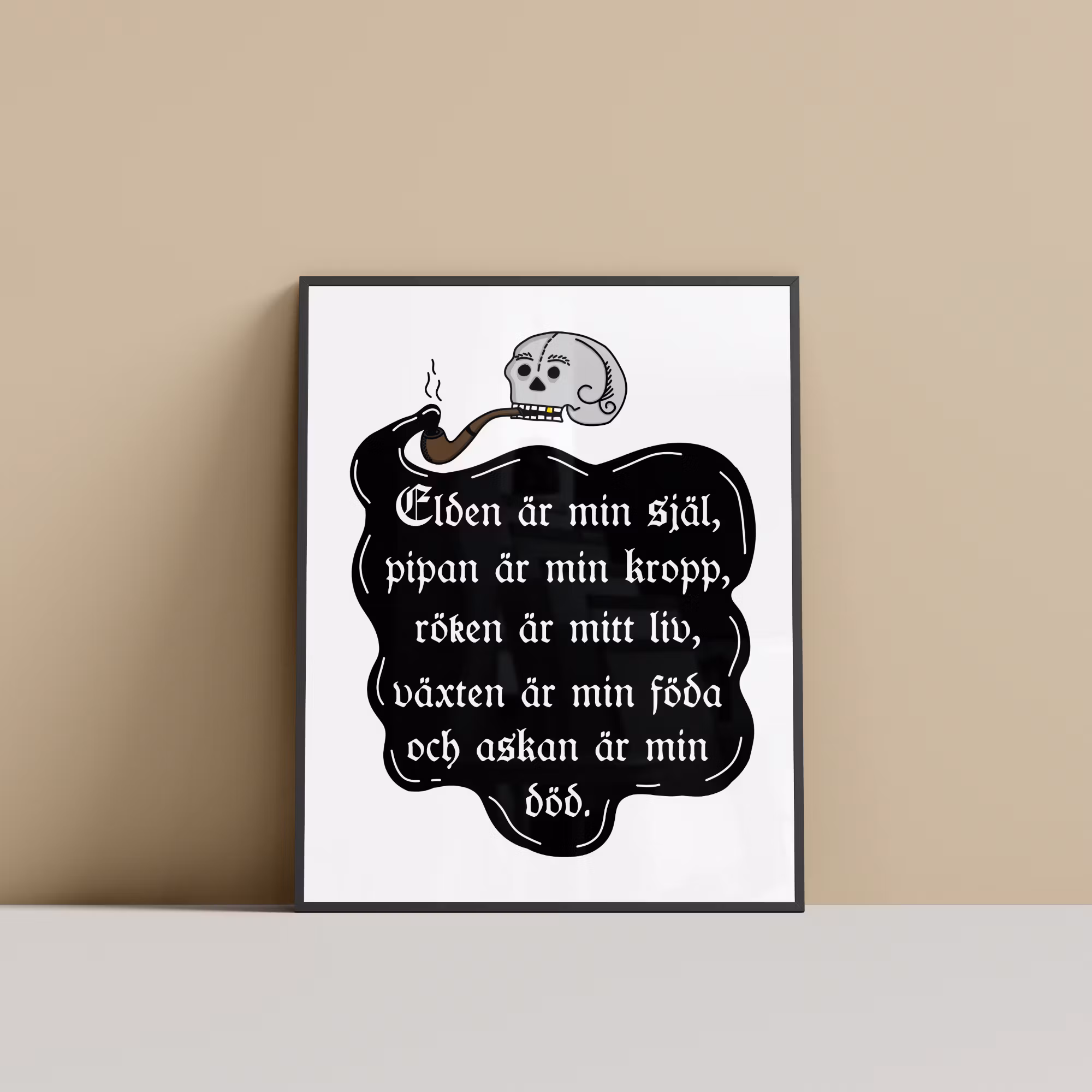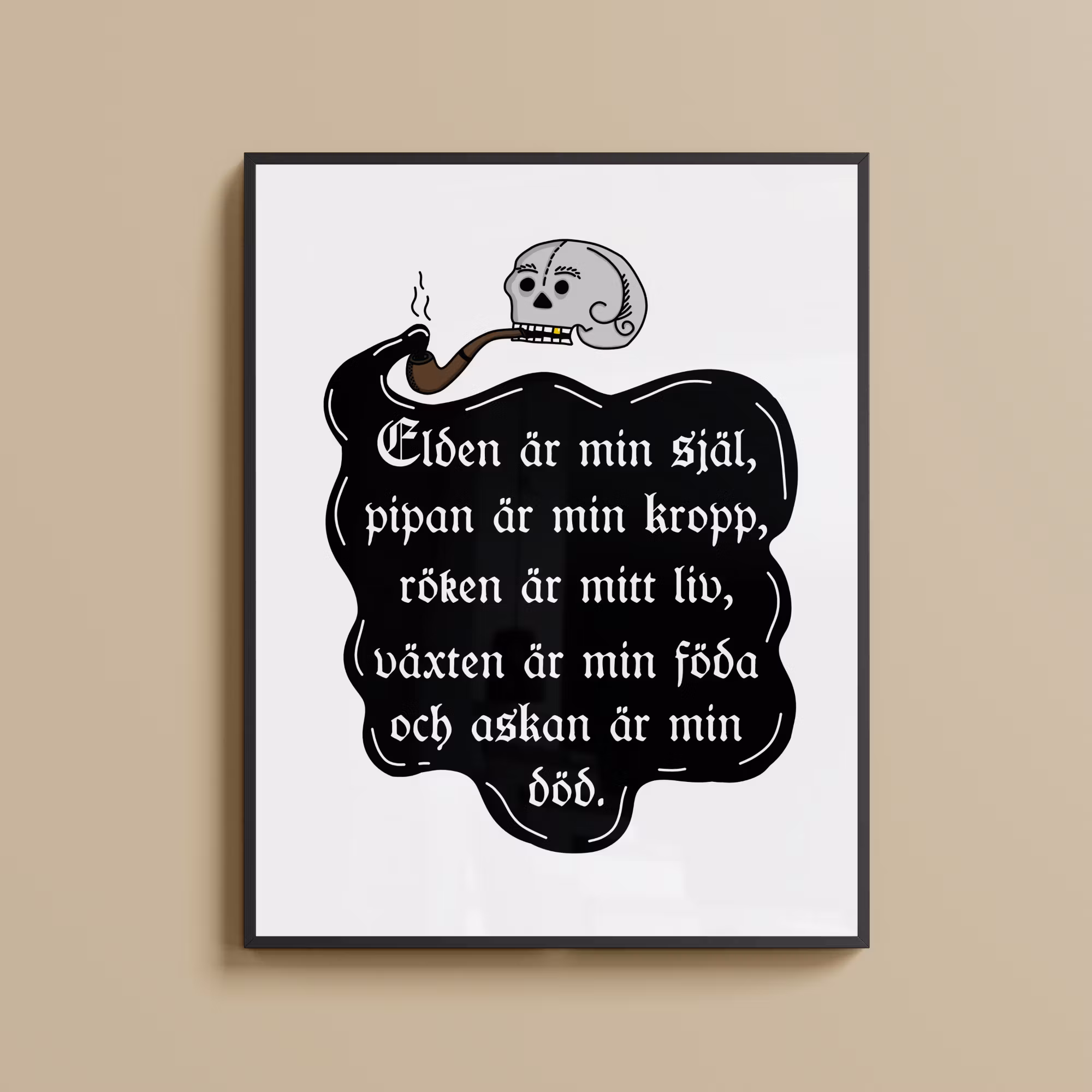 "Inspirerad från ett latinskt citat på en tobaksburk från 1500-talet." Vissa saker är tidlösa, detta citatet är ett sådant exempel. Livets cykel beskrivs här kort och koncist av en rökande döskalle.